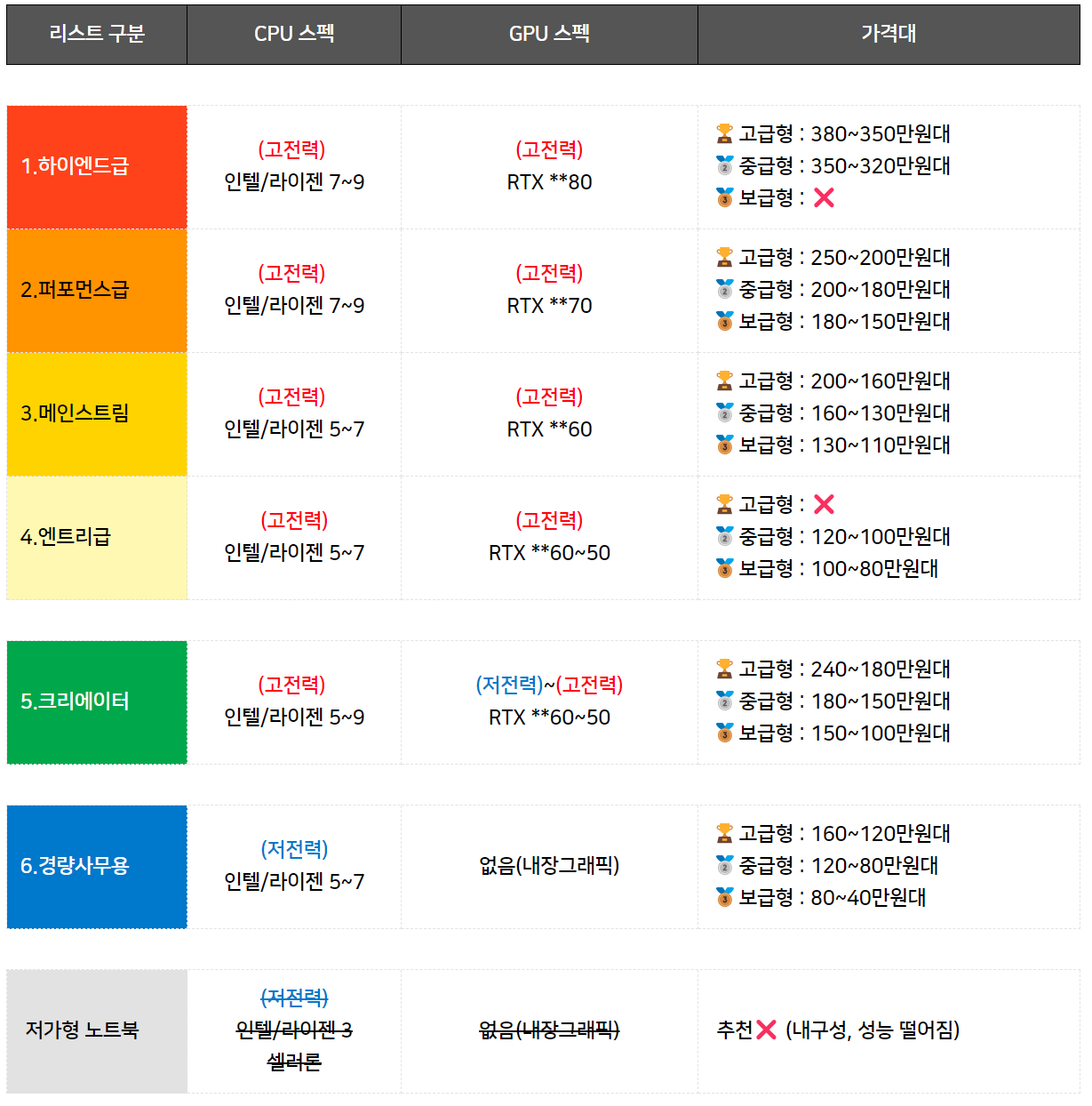 | 🥉보급형 기종 | ❌하이엔드급은 보급형 없음 |