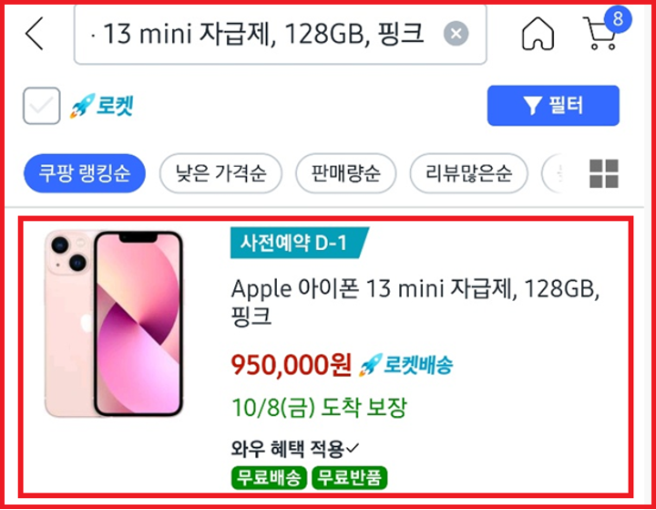 | 핑크 128gb | https://coupa.ng/b769na | 아이폰 MINI 페이지 (옵션선택방식) |
